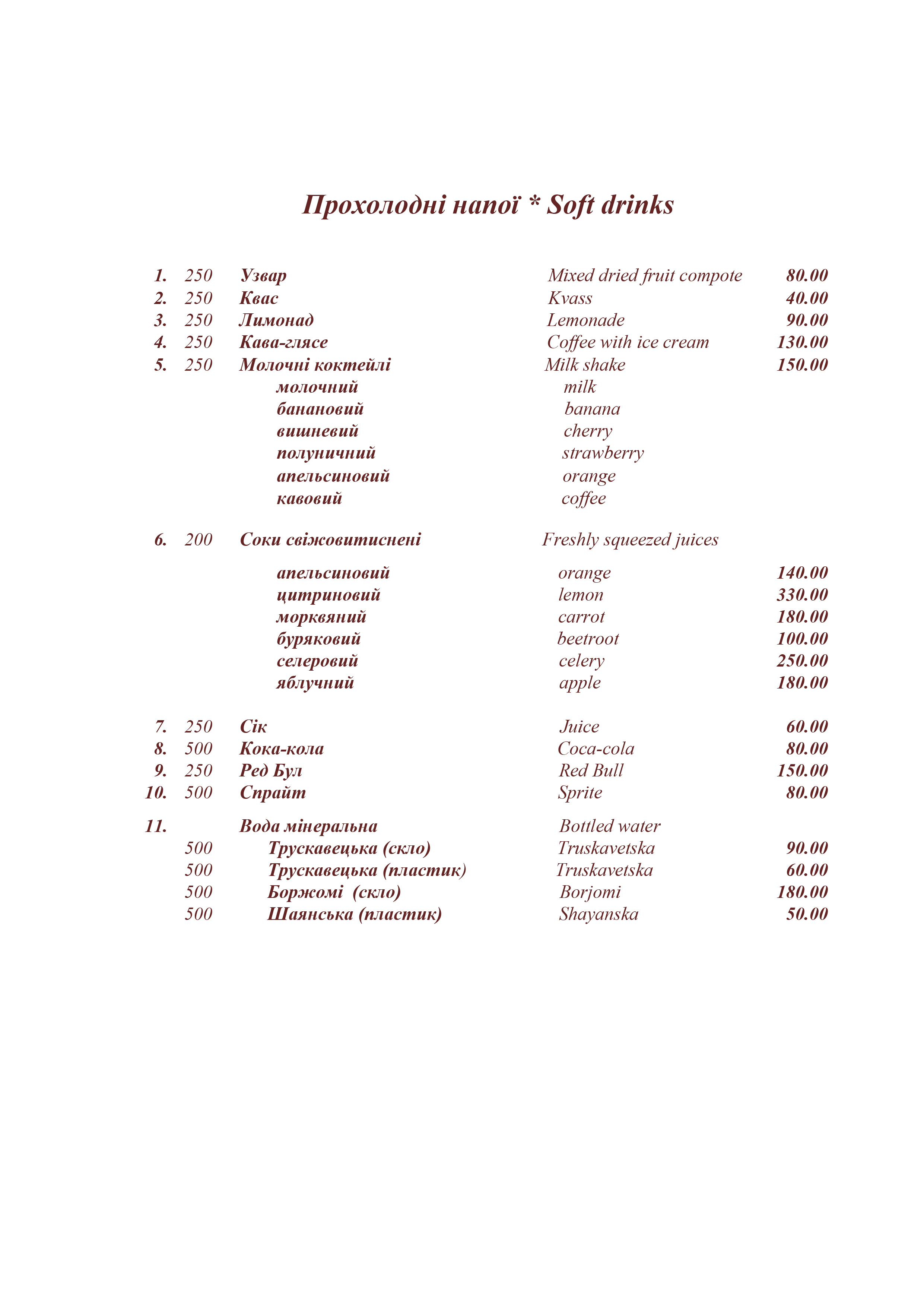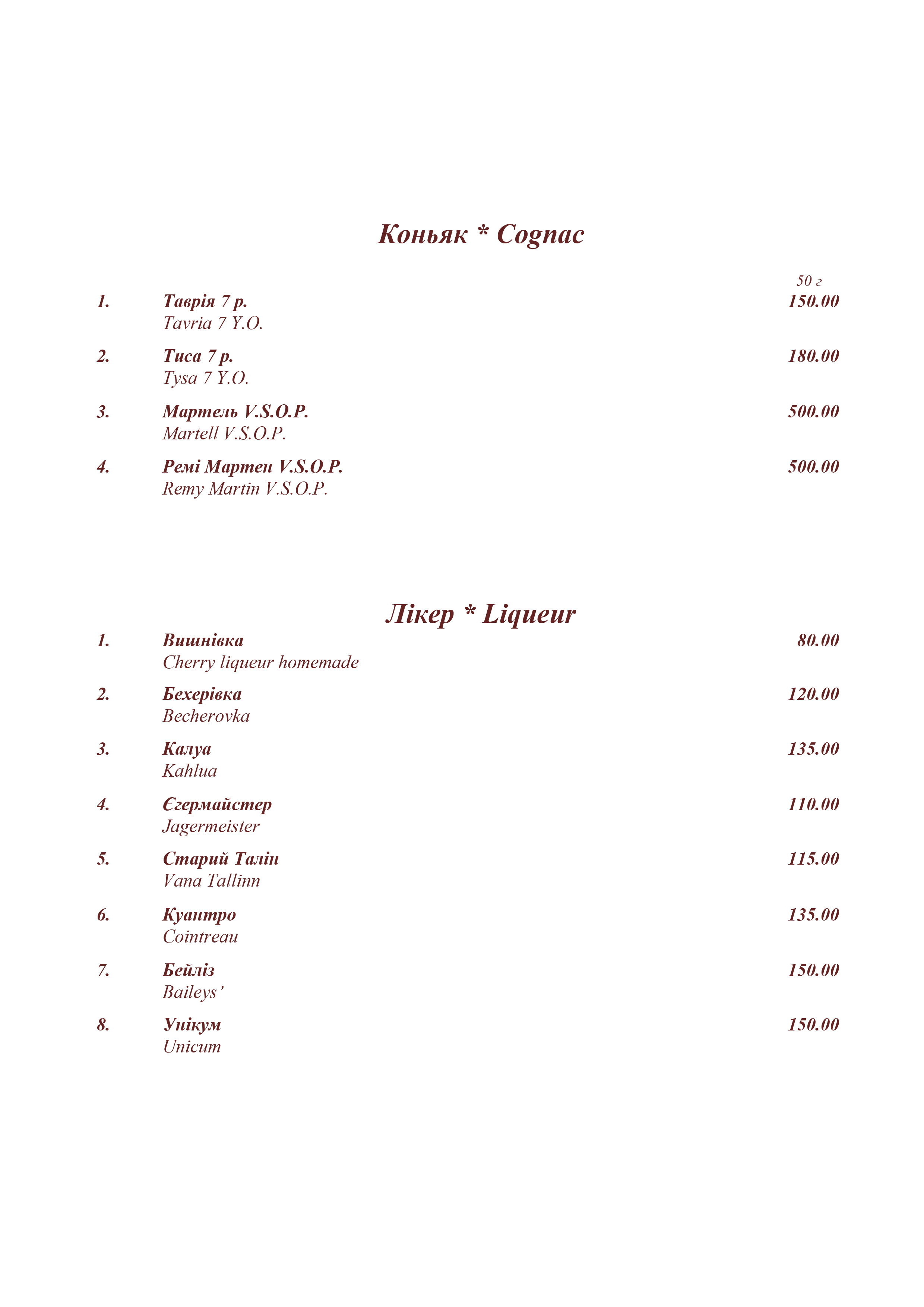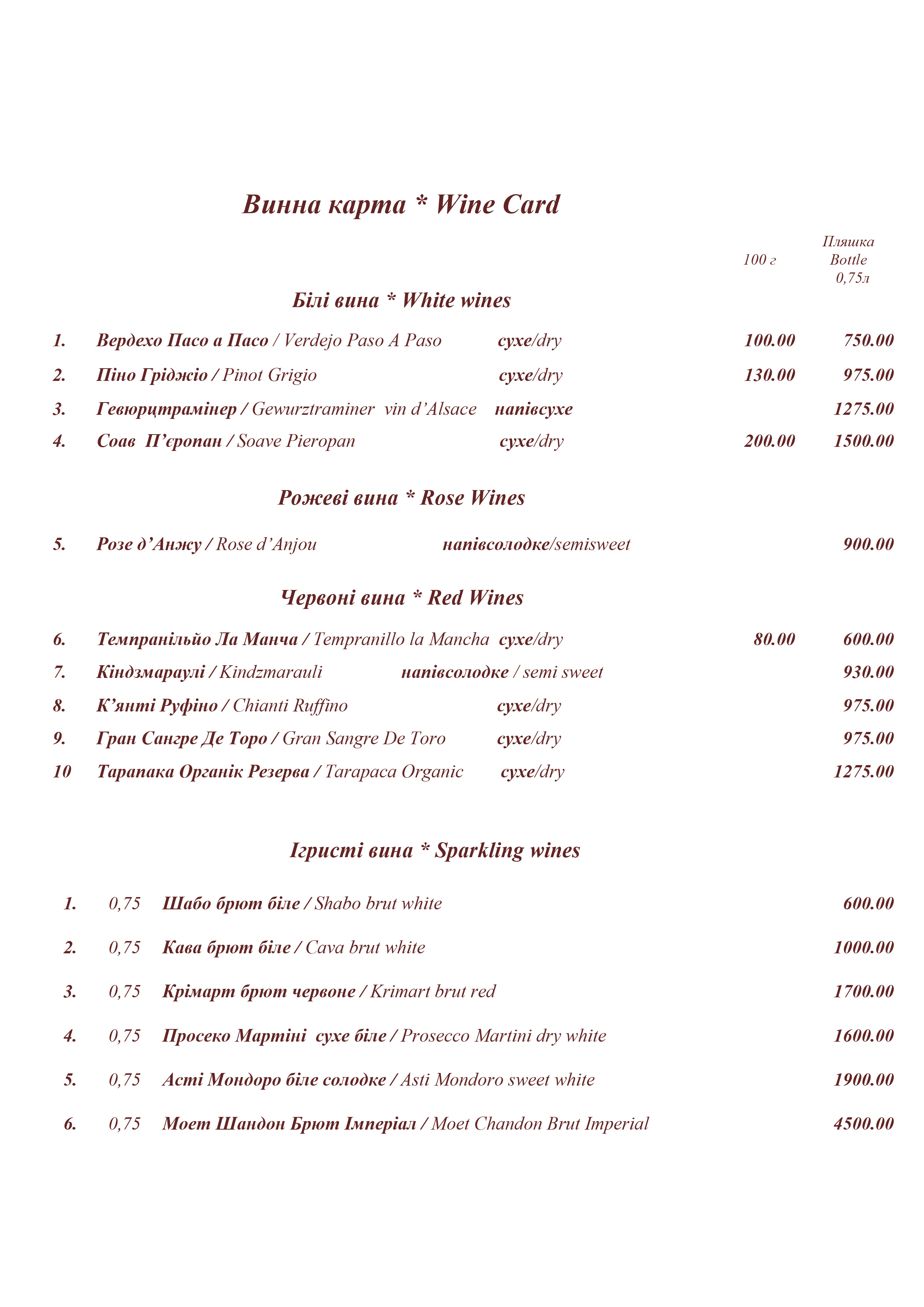 Плата за корок принесеної гостем пляшки вина – 300 грн.,