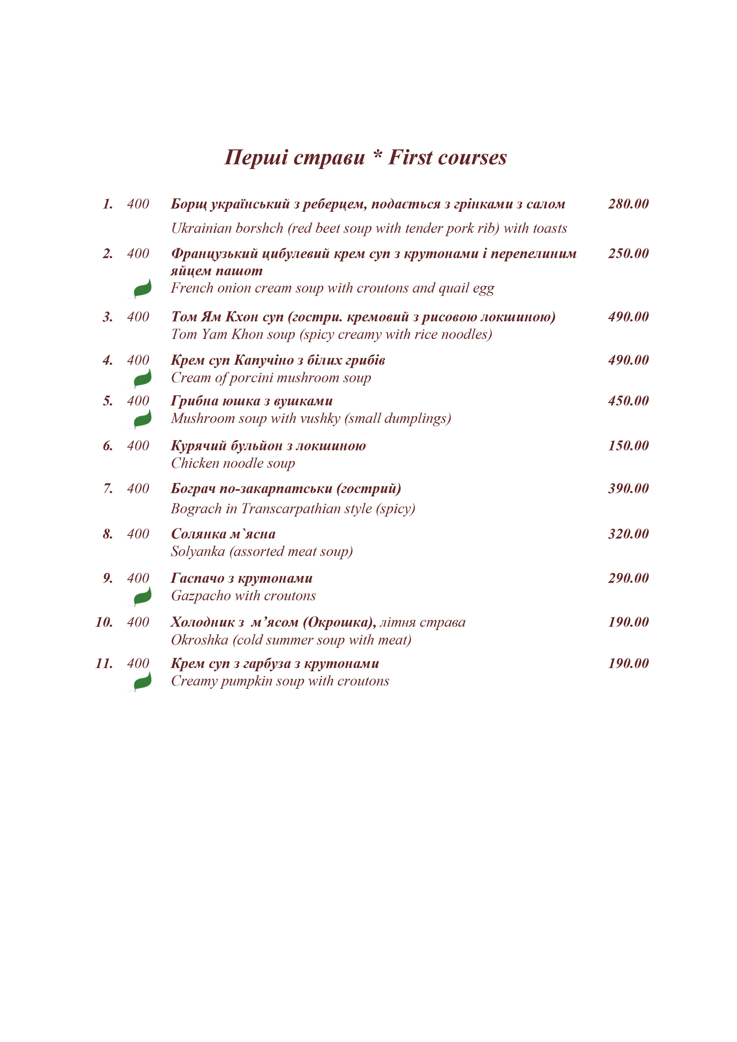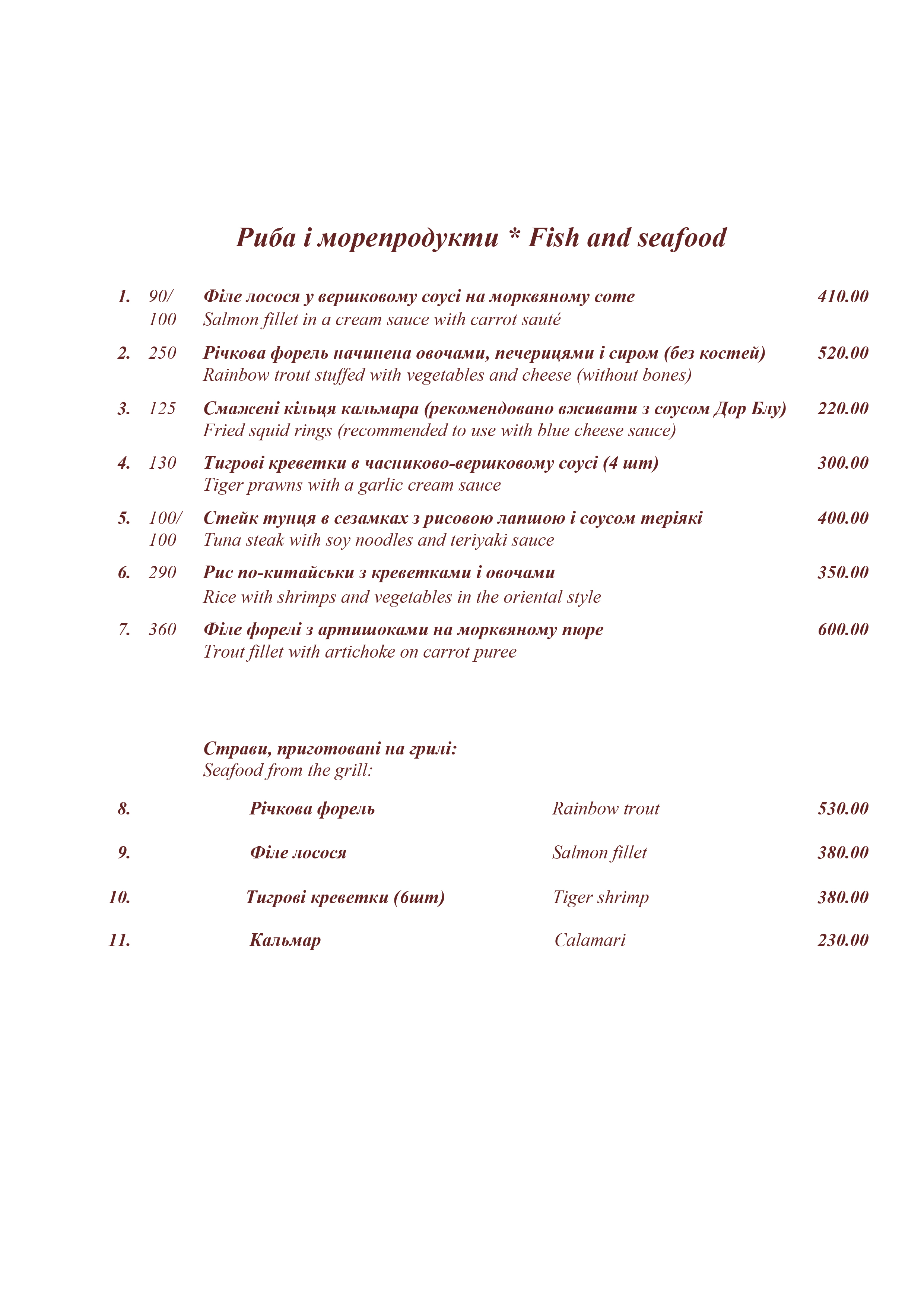 Після 23.00 обслуговування становить 400 грн за годину від столу.